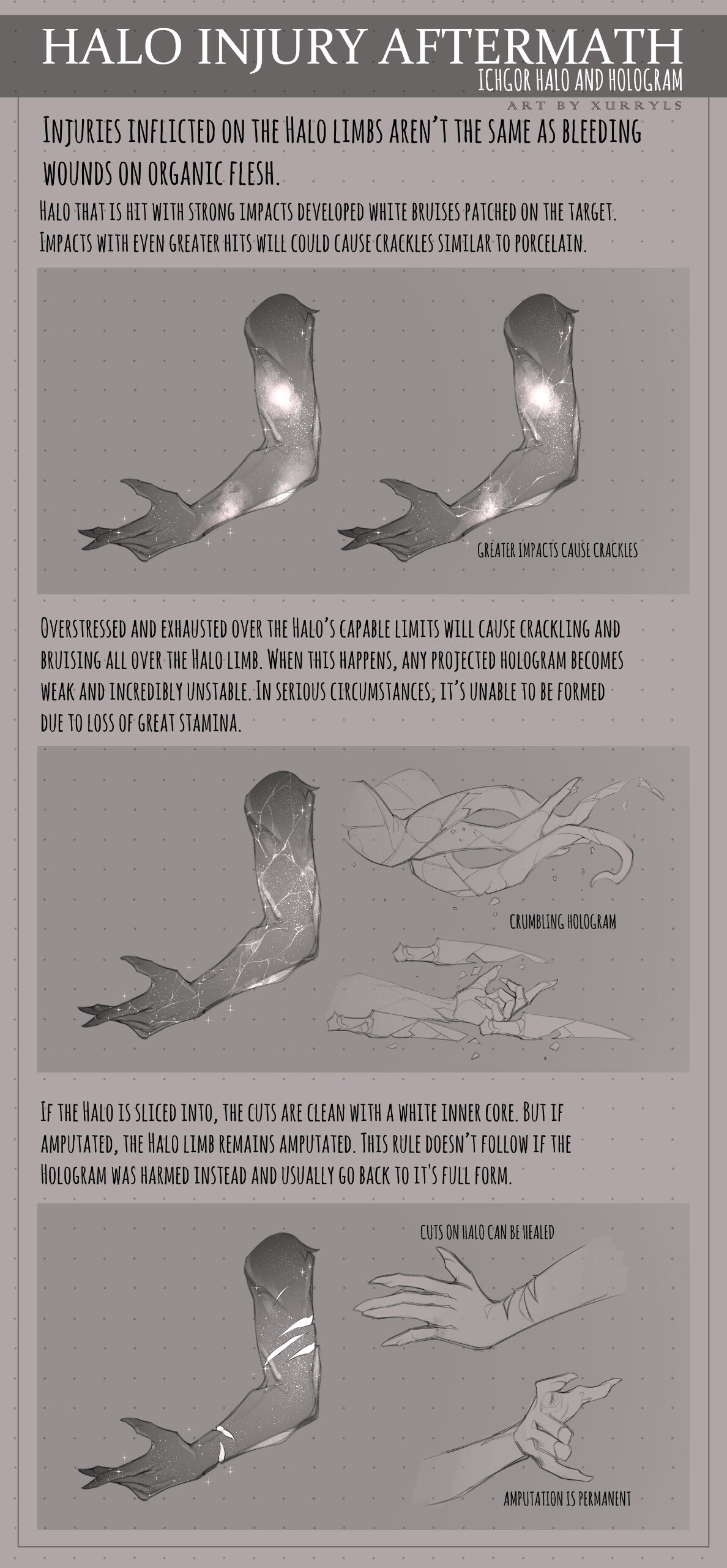 A physical limb that’s on an Ichgor where the natural flesh appears holographic. It is the core energy of the Hologram, where the ability of the Hologram is defined by the type of Halo an Ichgor has.