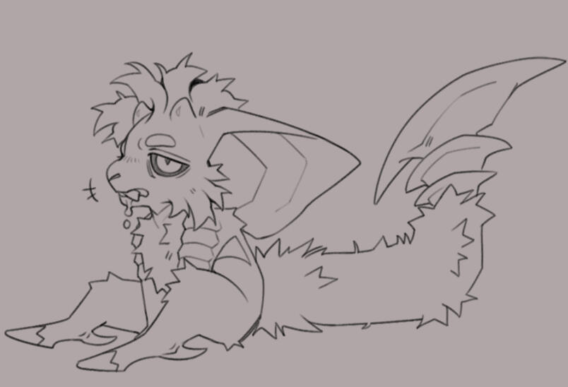 The adoption process is done by providing a batch of fertile eggs to the foster parent, and they pick the one that calls to them the most.Ichgor eggs have a smooth and hard shell with glowing shimmers that represent the Halo of the Ichgor who laid it. If you were to compare the size of an Ichgor egg to real world eggs, it would be closest to an Emu egg.On ChildrenOnce hatched, baby Ichgor adapt quickly and grow rapidly. They are known to be furry menaces and agents of chaos within their communities. For the first few years they run on all fours and tend to sleep in short bursts, causing even more chaos.Baby Ichgor cling to their parents akin to a baby possum for most of their childhood. They tend to drool a lot and become extremely hyperactive as they grow. With a tendency of overeating, they must always be supervised. Baby Ichgor are not born with teeth; instead, they have a row of hardened crests on their gums. This crest falls out after the first three months to make way for their first set of baby teeth. Hatchlings can start eating their own solid foods about six months.