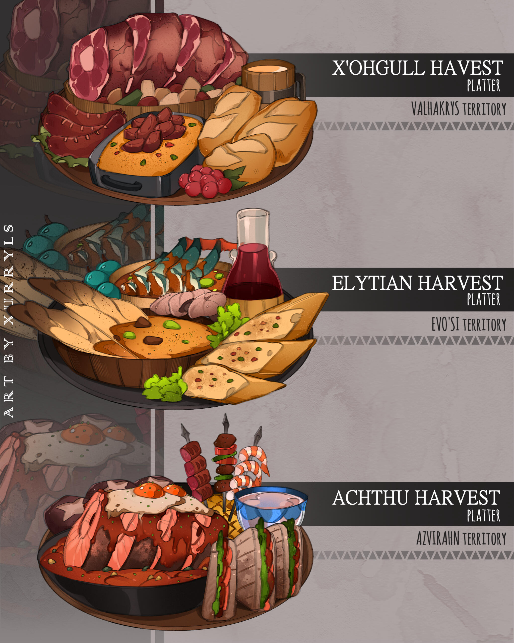 The Origin of ExileThe action of exiling a Ichgor from their people has roots in the religions of each territory. As per an ancient legend, the Five Early Gods separated and exiled the youngest of their number as an act of mercy after they wronged the cycle of life. These gods decided to not to kill their kin and instead punished by isolating them so they could think about their actions.Due to this legend, murder is very unlikely to happen in Ichgor culture, though exceptions are made when an infected come into play. Interacting with an exile can be seen also be seen as as defiling the practices of the Early Gods and can put any Ichgor in a lot of trouble.Each subspecies has their own way to respect the dead and handling their mourning. Even though Ichgor can be ruthless, they are a very forgiving and respectful culture when it comes to those that came before them.[VALHAKRYS]The Valhakrys respect and worship the concept of Premortality, Life and the Afterlife. The hums of the beginning and the silence of the end.They paint the face of their deceased with dye made out of velvet leaves and black ashes of their Wyvern descendants and ancestors as they lower them into the beautifully crafted coffin. As the living, they all hum for their silent brethren, carrying and marching to the highest peak to offer them to the Holy Wyvern of All-Seeing where the body is brushed with funerary torches and then touched to the snow, returning their soul to the gods. The icy remains are then marched back down the mountain to their holy place of rest, to be watched over by the groundskeepers.[EVO’SI]The Evo’si worship the Sun and Moon. They believe in life and birth gifted by the Sun and the cradle and passing gifted by the Moon. A nocturnal subspecies of the night living in the security of the moon and embracing the new life offered by the sun.They paint their deceased with blessed gold from the tip of the horns and the end of their tail to guide them into the path of the otherworldly. They then rest them on a pallet of silver wood carved by the priest and offered to the Great Wyvern of the Sun. As the moon reaches the center of heaven’s sky they offer a final kiss to their deceased before they are sent to the heavens by the flames of the Wyvern Sun.[AZVIRAHN]The Azvirahn worship the light within the inborn and reborn. They believe every entity has a strong physical and spiritual energy that presents both the reality inside and outside where all living shares a great connection. Birth from the unknown, return to the unknown. A life cycle of reincarnation of old and new souls reliving wonders as a new entity.Upon an Azvirahn's death they bathe their deceased kin and dress them in embroidered cloth that relates to their deeds. Over that cloth they pour hot wax from candles made by the holy blood before offering the deceased to the Wyvern of the Great Beyond. A gentle head bow signifies a blessing of a new life and a gentle kiss of its muzzle signifies the end where their last rest will be in the stars. After the judgement is passed they lower the dead into the earth with many offerings as the last gift of their previous life.