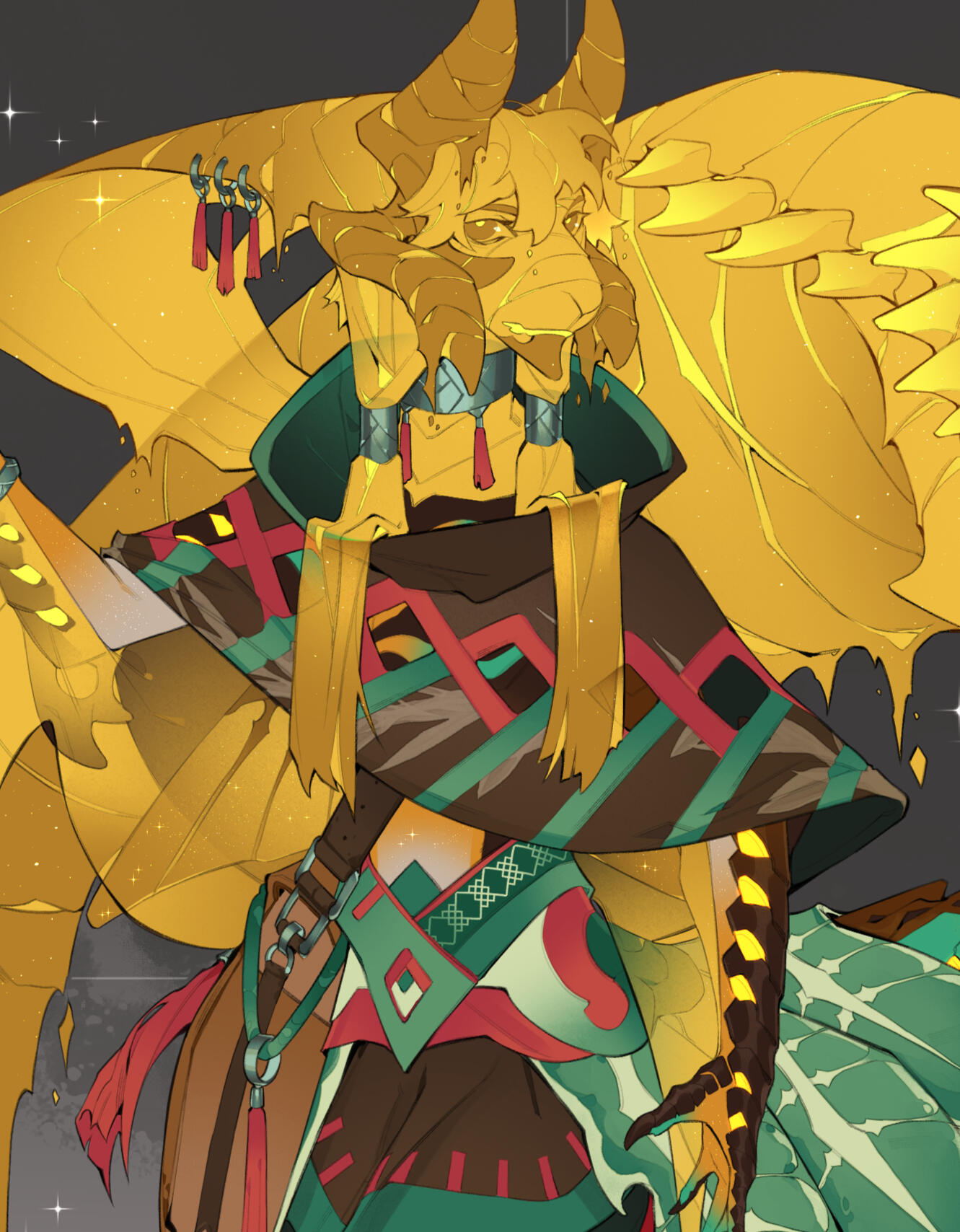 On RelationshipsIchgor are often monogamous long life partners. Though very uncommon, polyamory can exist in their community. The concept of one night stands and friends with benefits is not rare to them either and they are laid back if the situation may arise.The underbelly of Ichgor society holds a large variety of brothels and dance clubs that toy with the idea of taboo pleasures. There is a blurry line on what they can consider tasteless and what is a simple vice. These institutions show up more frequently the farther one may be to the main capital of their region.On Childbearing and AdoptionUnlike humans and mammals, Ichgor lay eggs. A Rhanix and Illhanx are capable of doing so, and a Zhanix and Illhanx are who capable of assisting in the creation of the eggs. When pregnant with eggs, an Ichgor's stomach will grow and protrude to a bump, and the eggs will be in the womb for a month before being laid and continuing to grow for a month outside of the womb. Ichgor commonly lay at least three eggs and can lay up to a maximum of five eggs. Unfortunately, it's common that only one egg hatches successfully, if two hatch then it is seen as good fortune from the gods.When having a successful, fertile egg is proving difficult, there also are adoption centers where Ichgor can adopt abandoned eggs. As expected, class rules are present within adoption as only Alphas and Behemoths can only adopt alpha or behemoths eggs, Celestials are only capable of adopting their own and Sentinels follow the same path.